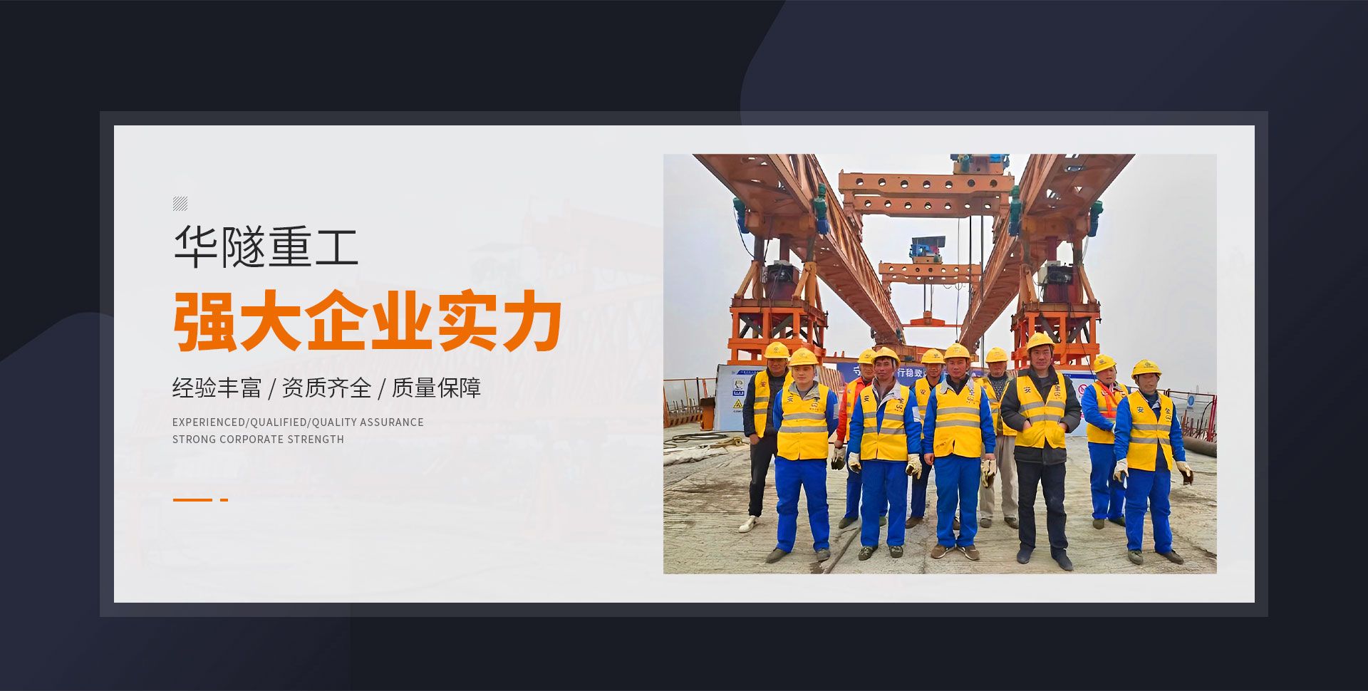 河南華隧重工機械裝備有限公司主要從事通用門式起重機、橋式起重機、電動單梁起重機,輪胎式起重機、架橋機、提梁機、遠梁平車、鋼絲繩電動萌蘆、卷揚機、起重配件制造、銷售:起重機械租賃、安裝和維修,起重設備園收,機械設備維修,鋼結構工程承包,橋梁工程及技術咨淘服務,銷售五金制品、機電設備:建設工程監理,建設工程設計,各類工程建設活動,建筑勞務分包,建筑物折除作業,施工作業,工程管理服務,土石方工程施工,裝如發運?! 」疽淹ㄟ^IS0國際質量、環境、健康與安全三合一標準認證,特種設備制造許可證和特種設備安裝改造維修許可證。擁有完熟的質量管理體系。嚴格的管理制度,強大的生產能力和先進的檢測手段,在保證產品質量的同時,也具備了極強的市場競爭力。  公司堅持科技創新為理念,產品質量為核心,注重信譽,建立了減信可靠、快捷、思速。便利周到的售后服務網絡?! ∥覀儞碛械募夹g專家和技術服務隊伍為客戶提供充善的售前技術支持和全天候的售后服務體系,讓您無后顧之憂,享受一站式的超值服務?!  叭A隧重工,伴您成功“是華隧重工永遠的宗指,真被的希望與各界朋友攜手并進。共創輝準!